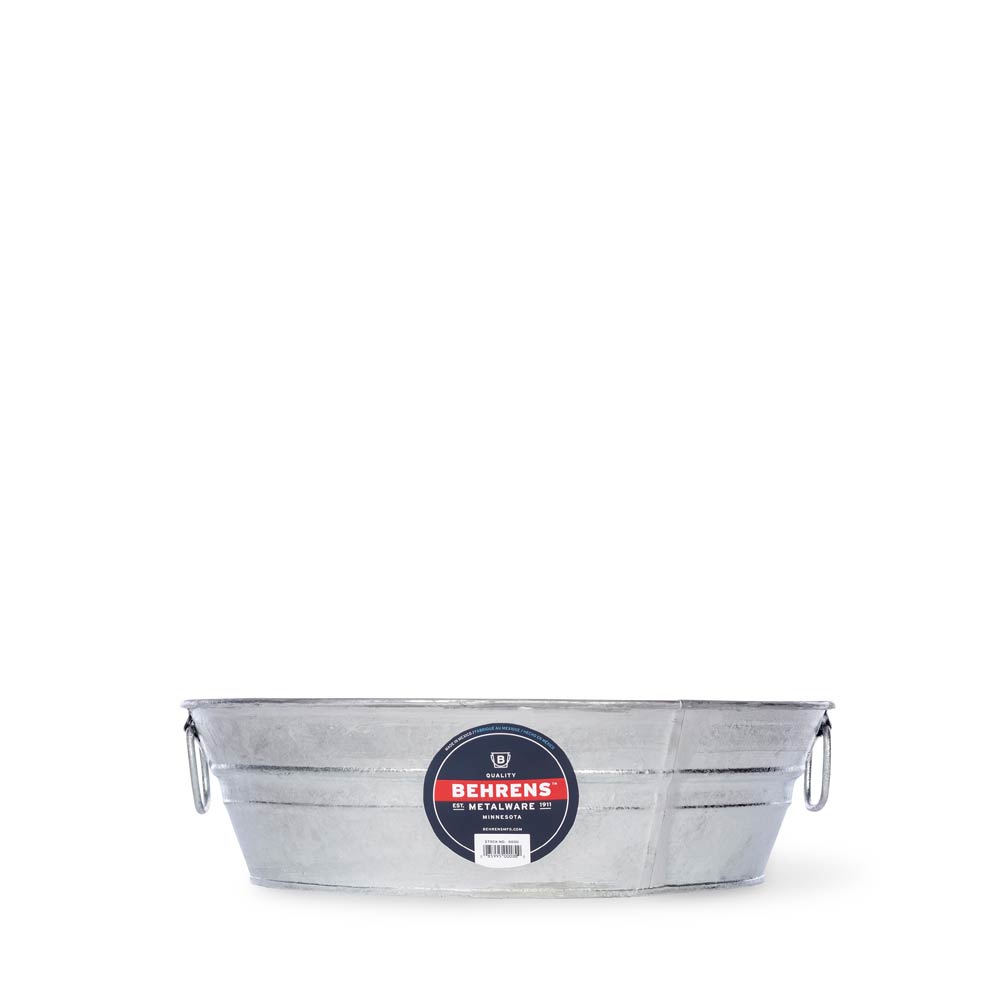Available in four sizes: 1 quart, 2 quart, 1.5 gallon, 3 gallon. This 3 gallon flat tub is both decorative and functional; ideal for wet or dry storage, indoor and outdoor decor, galvanized tub planter and more.