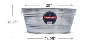 Our hot-dipped galvanized steel tub features a design for extreme use. First, an offset bottom keeps the tub slightly off the ground, thereby preventing undue wear and rust build-up. Furthermore, durable wire handles ensure easy portability and carrying.