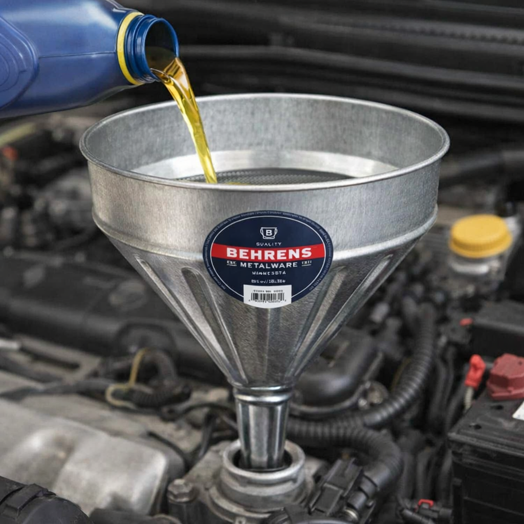 The Behrens 9-Quart Galvanized Steel Funnel with Screen delivers fast, controlled pouring for large fluid transfers. Built for durability and efficiency, it’s ideal for automotive and utility projects.